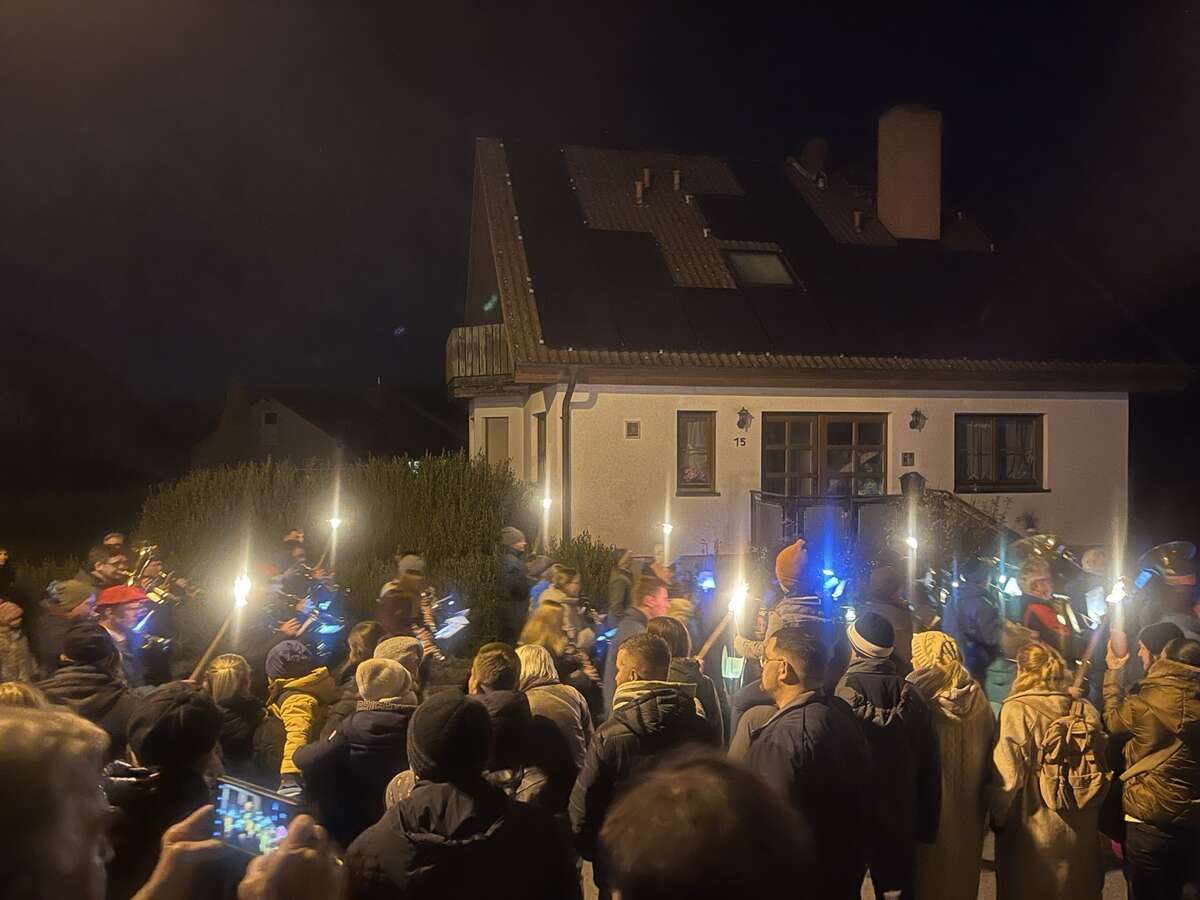 Auf dem Schulhof erwartete alle ein gemütlicher Ausklang: Dank der engagierten Eltern gab es heißen Punsch und leckere Bratwürste. Bei Musik, Gesprächen und vielen leuchtenden Laternen klang der Abend fröhlich aus – ganz im Sinne des heiligen Martin.