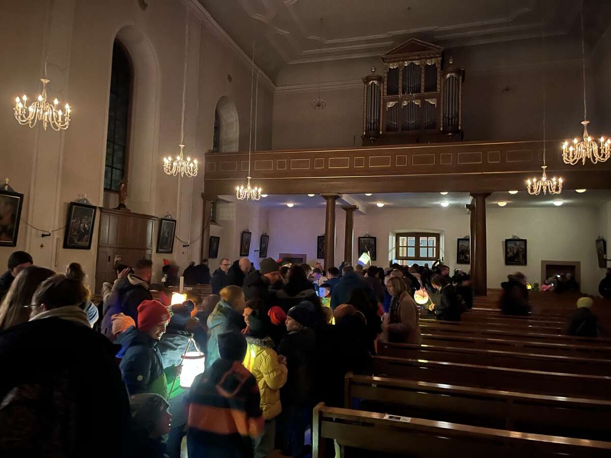 Am 11. November fand an unserer Schule wieder der traditionelle Martinsumzug statt. Wie gewohnt begann der Abend in der Kirche, wo eine besonders feierliche Atmosphäre herrschte.